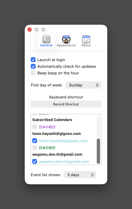 このアプリはMeetingBarという名前のとおり、カレンダーアプリではありません。