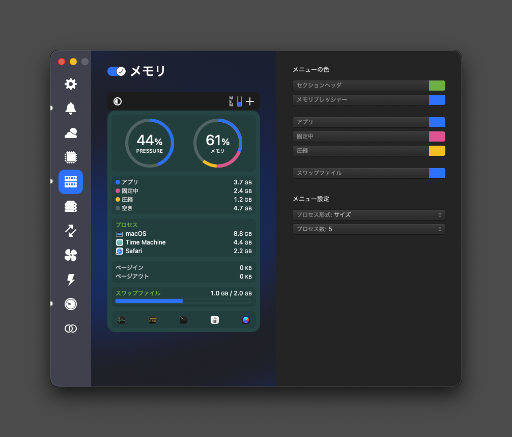 有料で購入したのに、カレンダーが自分のユースケースにあってなくて悲しい。。。となっていましたが、メモリの状況は知りたいケースが多々あるので、結果ヨシというかんじです。