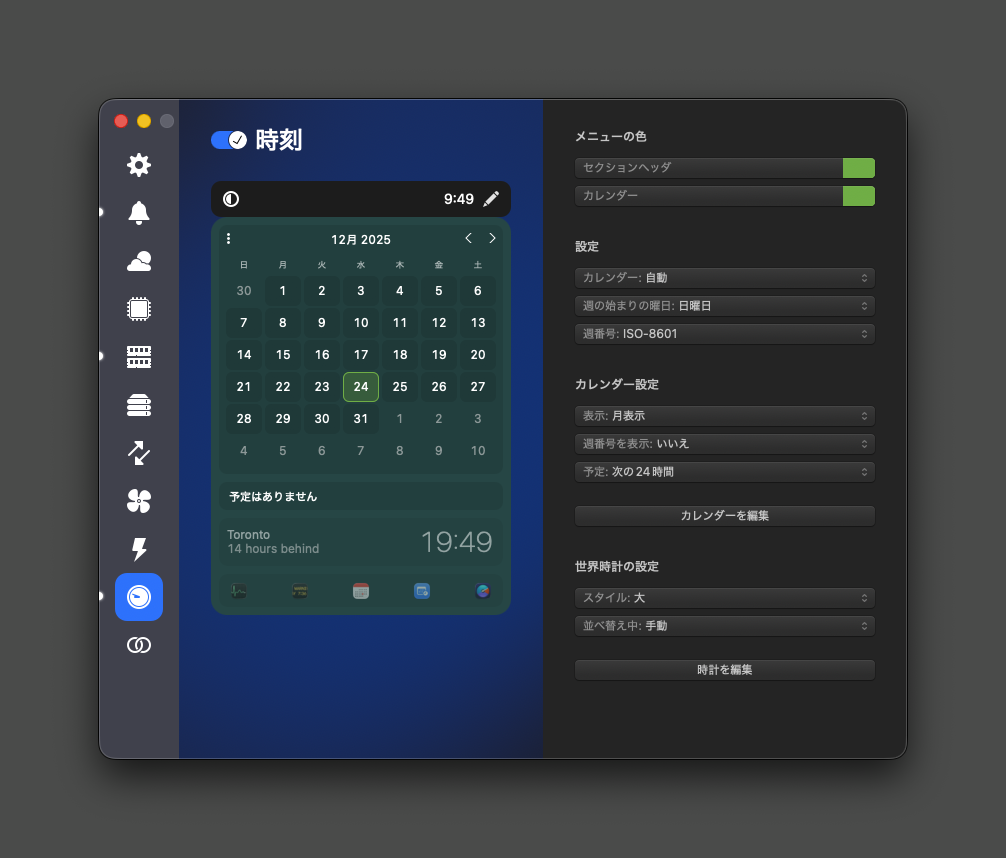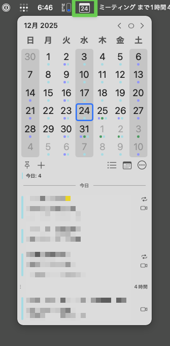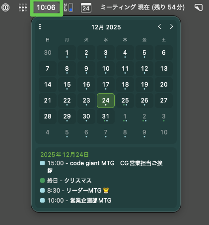 メニューバーに色々な情報を表示させられるアプリの1機能としてカレンダーがあります。